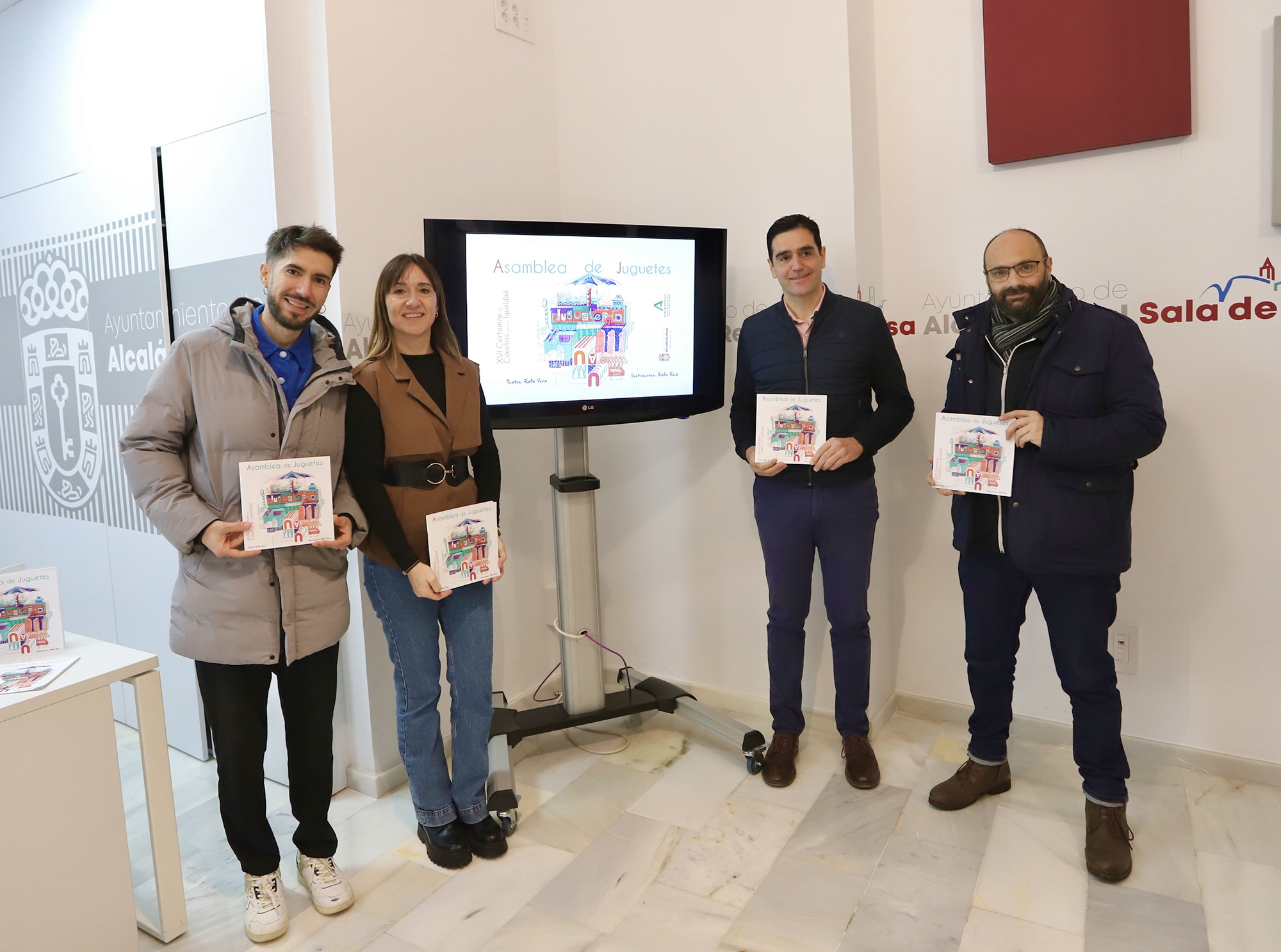 El alcalde, Marino Aguilera, y la concejal de Igualdad, Dulce Medina, han presentado esta mañana la publicación del cuento “Asamblea de juguetes”, ganador del XVI Certamen de Cuentos por la Igualdad, convocado por el área de Igualdad, y cuya autoría es del alcalaíno Rafael Vera, que, junto con el artista local Rafa Ruiz, que firma las ilustraciones, ha estado presente en el acto.