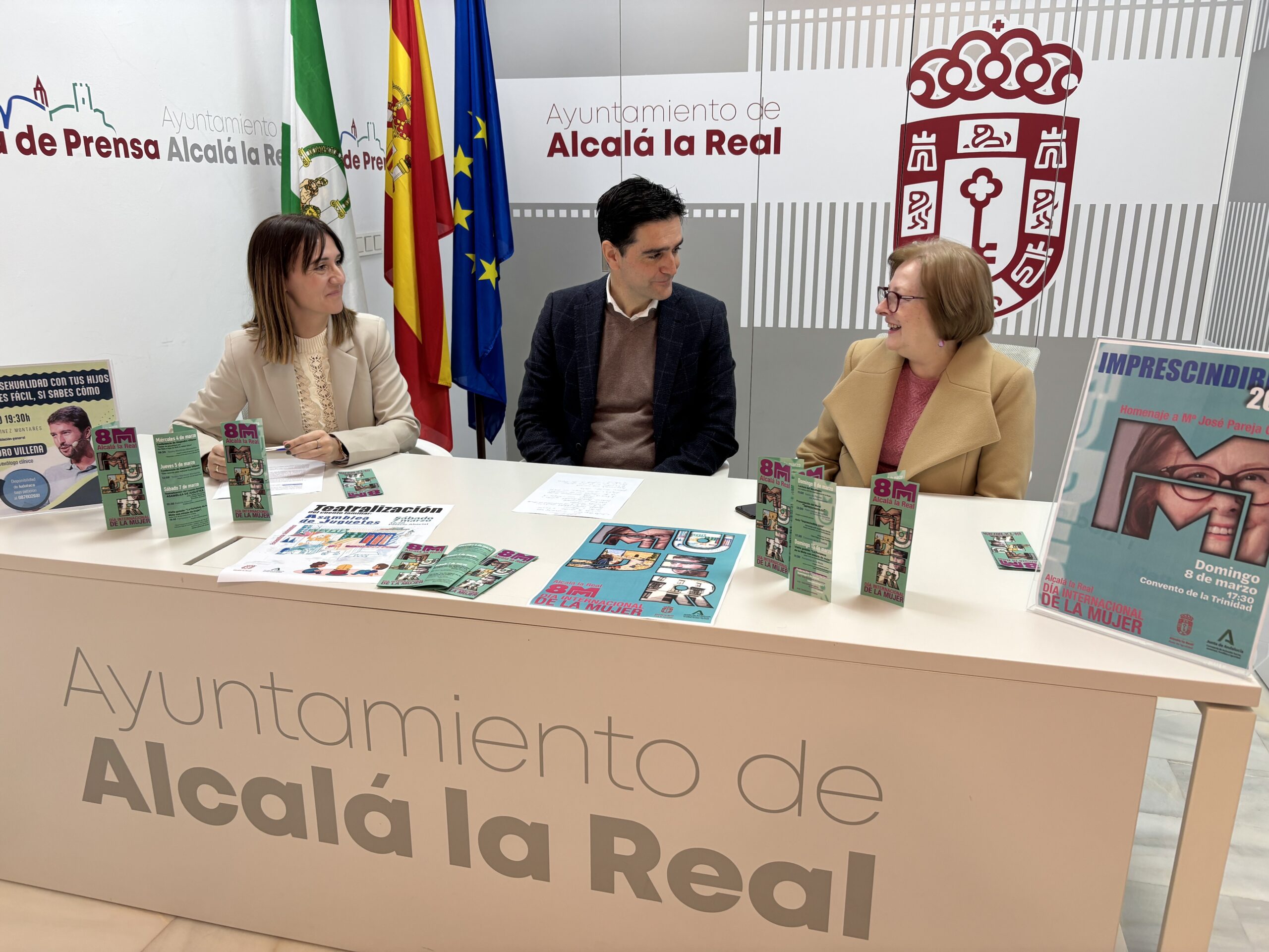 El alcalde, Marino Aguilera, y la edil de Igualdad, Dulce Medina, han presentado la programación con motivo del 8M, Día Internacional de la Mujer, así como el nombre de la Mujer Imprescindible 2026, reconocimiento que este año recae en María José Pareja García, presente también en el acto. por su trayectoria y compromiso con la igualdad y el movimiento asociativo del municipio.